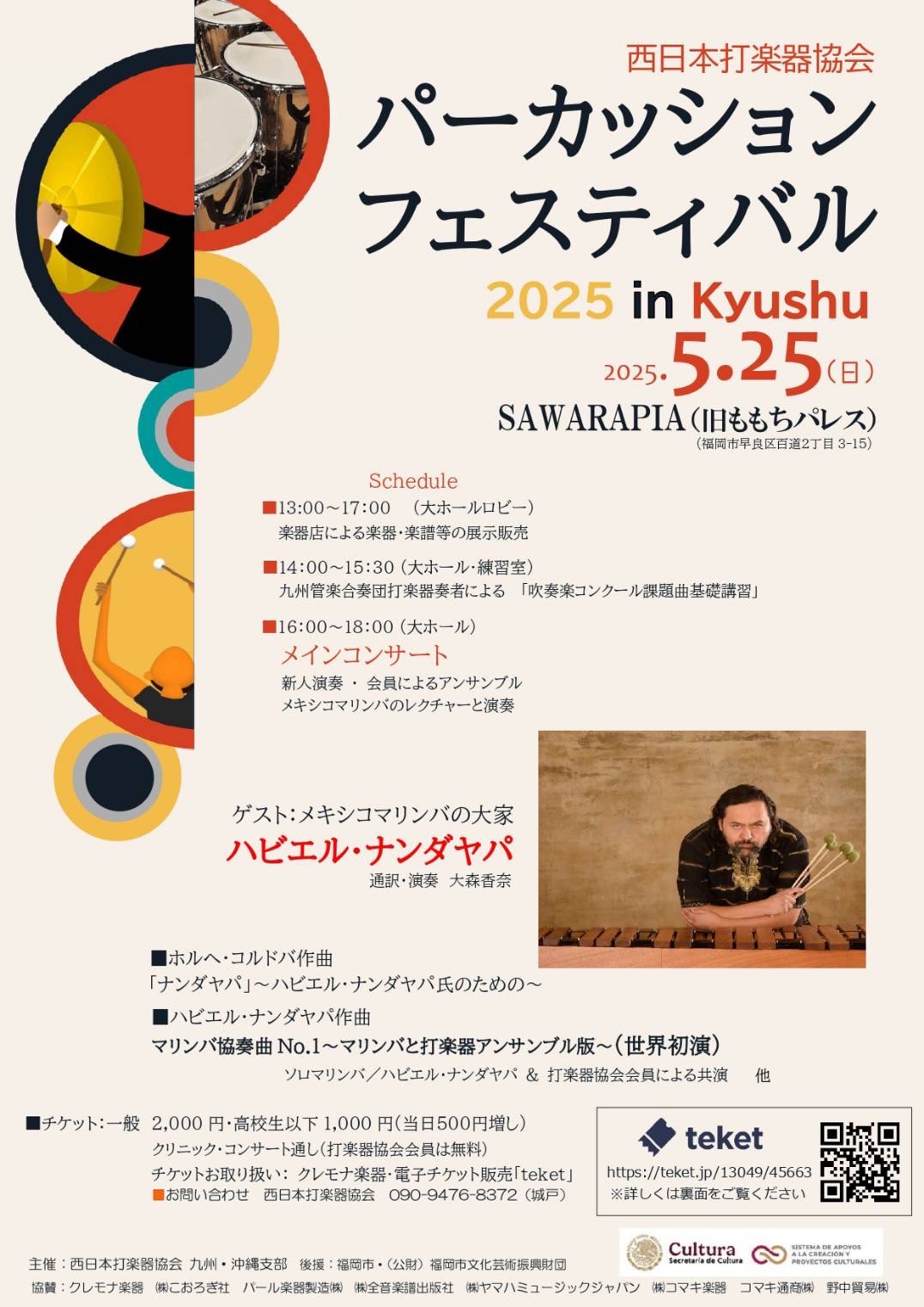 「5月25日(日)福岡で開催されます西日本打楽器会さんのフエスティバルで、ハビエル・ナンダヤパ先生のスペイン語の日本語の通訳とハビエル先生とデュエット演奏、そして西日本打楽器協会の皆様と演奏をさせていただきます♪